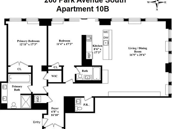 Introducing residence 10B, the most sought-after 2-bed, 2.5-bath corner unit on a high floor at 260 Park Avenue South. Step into this sun-drenched home with city views overlooking Park Avenue in the spacious living room. The breathtaking great room spans nearly 900 square feet, is close to 30 feet wide, with 11-foot ceilings and nine expansive windows. The chef's kitchen is open to the great room and includes a Carrara marble island, Italian walnut cabinetry, and is equipped with top-tier appliances including a Subzero refrigerator, Viking range, Bosch dishwasher, and wine refrigerator. The expansive primary bedroom boasts tailored walk-in closets, with an ensuite marble and limestone bathroom featuring a double vanity, soaking tub, and separate shower. The spacious second bedroom offers custom built-ins and its own ensuite bathroom. The home is complemented by a powder room, in-unit laundry, and abundant closet space. 260 Park Avenue South offers the perfect blend of pre-war grandeur and modern luxury. The building has a full-time doorman, concierge, two landscaped roof decks, a fitness center, bike room, and a parking garage across the street. Convenient to all major transportation, the farmers' market, and some of the best restaurants in New York City, this truly is a rare find. Initial Application Fee: (Non-Refundable) $20 per application TenantApplication Fee (Non-Refundable)$350.00 TenantApplication Fee (Non-Refundable, Due to the Building) $500.00 TenantCredit Report Fee (Non-Refundable) $200 Per tenant named on the lease TenantMove In Deposit (Refundable) $1,000.00 TenantMove In Fee (Non-Refundable) $1,200.00 Board Package Single-Application Initiation Fee (Non-Refundable) $75 Residents are responsible for Electricity, Cable, and Internet.