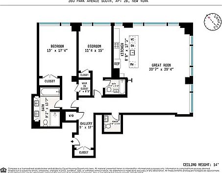 Apartment 2B is a truly unique loft style space that is hard to come by. The massive 2 bedroom, two and half bath corner unit boast tons of natural light with tis souring 14ft ceilings and windows to match. Sitting on the buildings most desirable line, the unit overlooks picturesque views of Park Avenue including a landmark church, The Parish of Calvary- St. George's. In addition to the incredible views, the custom city quiet windows with double motorized shades provide peace and quiet from the busy streets of Manhattan. Featuring an open floorplan, chef's kitchen and marble island, the 1,880 square foot unit ties in modern luxury to the surrounding pre-war aesthetic. Just off the gallery style entryway, two bedrooms and a sizable powder room lead around the bend to the massive living space. The primary bedroom features custom closets for ample storage. Adding to the one of kind room, residences will find a soaking tub, and rain shower for an at home oasis. The second bedroom, in addition to its size, is complete with tons of space and an en-suite bathroom as well. 260 Park Avenue South is pre-war building, built in 1917, and converted to luxury condominiums in 2004. Before the conversion, the building served as headquarters for the United Federation of Teachers. Divided up into three elevator banks, there are no more than five apartments on any given floor, providing privacy and quiet. Located minutes away from Union Square, Madison Square Park and Gramercy Park, some of the city's best shopping, dining, and transportation is just minutes away.
