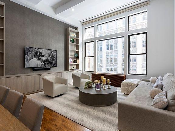 TERRACE 2 BR + OFFICE If you're looking for a gracious loft with 14' ceilings, 9' windows, a private terrace 2 bedrooms 2.5 baths and a home office then come right in. A long dramatic hallway and full row of generous closets leads to the East facing living room featuring, 14" ceilings and 9" windows resplendent in natural sunlight. A meticulously renovated kitchen includes Subzero 48" side by side refrigerator, Wolfe cook top with outside venting hood, two additional Wolfe ovens, one a convection and a Bosch dishwasher. Soft touch custom designed cabinets including a generous pantry makes entertaining friends and family a breeze. The master suite has western exposures, a private terrace, custom built in closets, a fully gut renovated bathroom, Agata Azul Porcelain floors, steam shower, double vanity cabinets by RH. The second bedroom plus den/office allows working from home easily and privately. Walnut-stained wide plank oak floors, fully automatic blinds plus a Bosch Washer/Dryer complete this truly extraordinary loft home. And let's not forget the PRIVATE TERRACE. 260 Park Avenue South is a full service condo boasting not one but two private roof decks. A complete and equipped fitness room, bike room. Pets and Pied-a-terres allowed. Close to Union Square Famers Market, Gramercy Park and Greenwich Village. You'll love calling 260 Park Avenue South home.