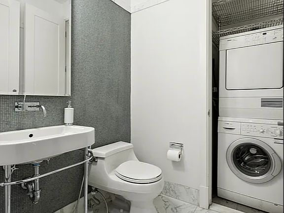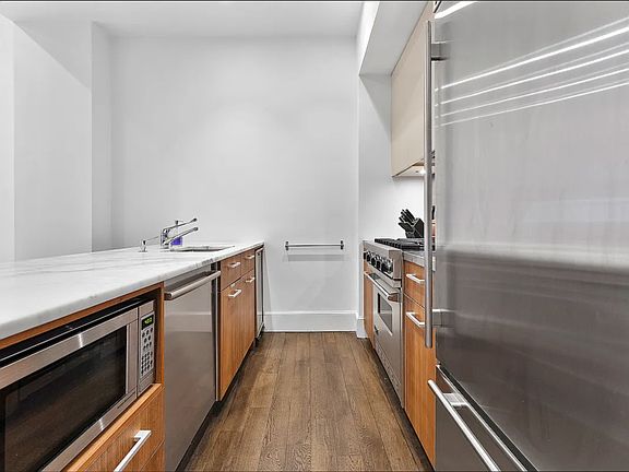 Work from home in this perfect blend of pre-war charm and modern luxuries. Converted in 2004 by the renowned Karl Fischer Architects, this 1050sqft apartment boasts a carefully designed space that rivals new development today. With beamed, 15-foot ceilings throughout, this apartment is airy and quiet, a perfect home in the heart of the bustling Flatiron. The lush open kitchen is adorned with white Calcutta marble counter tops, complete with Sub-Zero fridge, Viking stove, Bosch dishwasher, slate backsplash and wine cooler. The best part: the kitchen vents outside. The en-suite master bath comes with double vanity, deep soaking tub and a separate shower stall with rain showerhead. The good-sized office could be used as a guest room or nursery. Even the power room exudes the classic vibe, with marble floors, mosaic backsplash and free standing wash basin. The apartment features abundant custom built closets and in-unit washer/dryer. Built in 1917, the building is replete with the stately details including high ceilings and a gorgeous lobby. It's a full service building with 24 hour doormen, 3 separate roof decks, gym, a rock garden and a bike storage. The building is located in the heart of Flatiron, near Madison Square Park, many restaurants and bars, 5th avenue shopping and multiple subway lines. 2F is available for rent starting on July 15th