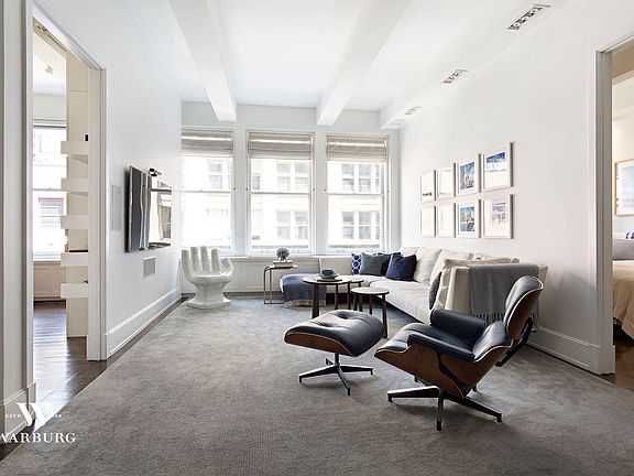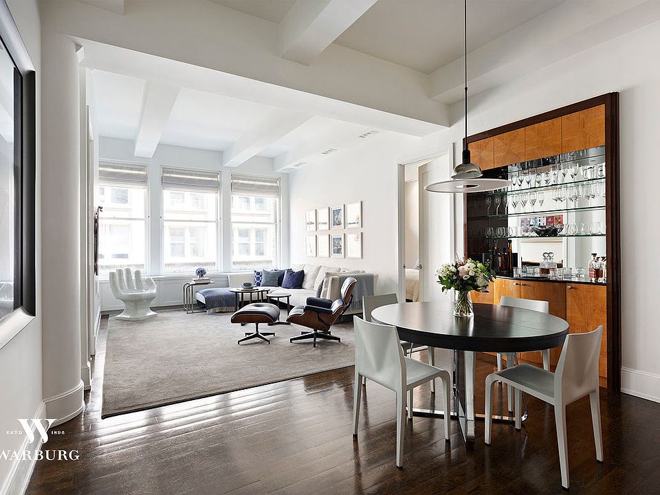 Downtown Loft Living! Move right in to this spacious 2-bedroom, 2.5-bathroom home in one of Flatiron's most coveted pre-war condominiums. A gracious foyer leads to a loft-like living/dining room with 3 oversized windows overlooking 21st Street. The dining area features a custom built-in bar with glass shelving to showcase your glassware and beautiful lacquered wood cabinets for additional storage. The open chef's kitchen features top-of-the-line appliances from Viking and Sub-Zero, Calcutta marble countertops, and a garbage disposal. A breakfast bar provides ample storage and space for barstool seating. The loft-like split bedroom layout offers unparalleled privacy. The primary bedroom suite is spacious enough to accommodate a king sized bed with plenty of room to spare. It has large closets and an ensuite spa-like Travertine marble bath with double sinks, an oversized soaking tub, and separate rain head shower. The second bedroom is also generously sized and features its own ensuite bath. The home has been pre-wired for a smart home system that controls the lighting, sound and televisions. With a powder room, wine refrigerator with capacity for over 500 bottles, in-wall speakers in the living room, a washer/dryer, 12 ft. ceilings, through-wall A/C's in every room, and custom outfitted closets, this home is suited for your every need. 260 Park Avenue South is a full-service pre-war condominium with a 24-hour doorman and concierge, live-in super, newly renovated fitness center and beautifully landscaped roof deck. Situated at the corner of 21st Street and Park Avenue South, this convenient location is just moments from some of the city's best dining, shopping and entertainment and offers easy access to major transportation. Neighborhood attractions include Eataly, Fotografiska, Madison Square Park, Gramercy Park and Union Square.