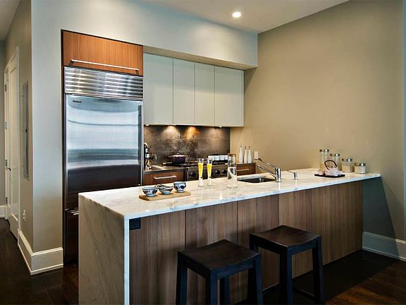 SIGNED LEASES-WORKING ON BOARD PKG--A modern, spacious and stylish home nestled in the heart of pleasant, lively and convenient neighborhoods of Flatiron, Gramercy Park and Union Square. Steps away from gourmet markets, restaurants & lounges, boutique stores, music/arts/sports activities for adults and kids in Madison Square Park and Union Square Park. A modern and chic lobby and friendly doorman welcomes you and an elegant hallway leads you to your own serene oasis. This 2-bedroom 2-bath home of 1407 sqft, styled with soothing colors and luxurious finishes, feels open, tasteful and comfortable with oversized windows facing east and 12-foot cross-beamed ceilings. Its elegant living & dining space is complimented with a gourmet open kitchen which has a beautiful Calcutta marble-top counter, walnut cabinetry, stainless steel Sub Zero refrigerator, Viking range, U-Line wine cooler, Bosch dishwasher, etc. The steel column and rich oak wood floors lend to the special aura of prewar sophistication. The master bedroom has a stunning limestone-tiled ensuite bath with double sinks, a soaking tub and a rain showerhead in a separate stall. Generous closet space throughout (including a walk-in). Citiproof windows installed throughout. Bosch washer & dryer in unit. The building delights residents with 24-hour concierge, doorman, health club, bike storage, and 2 common rooftop terraces. AVAILABLE OCT 15 or NOV 1.