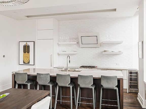 Flawlessly updated double-exposure corner residence in a prestigious pre-war building combines unparalleled luxury and meticulous design. The expansive 35-foot wide living room is bathed in natural light, offering breathtaking city views through walls of windows, while nearly 11-foot ceilings and rich walnut-stained oak flooring enhance the sense of space and grandeur. The renovated kitchen features custom cabinetry, polished stone countertops, and top-of-the-line appliances, including a vented-out Wolf Professional gas cooktop and built-in Gaggenau refrigerator-freezer combo. The spacious bedrooms are each adorned with custom millwork closets and sophisticated en-suite baths clad in Bianco Dolomiti marble with Waterworks fixtures. The primary suite boasts a dressing area and spa-like bath with a walk-in Waterworks shower and custom marble details. This residence also offers an array of modern conveniences, including an integrated drop-down ceiling movie theater system, automated Lutron shade window treatments, Sonos speaker system, and smart home capabilities. Residents of 260 Park Avenue South enjoy a suite of five-star amenities, including 24-hour doorman and concierge services, landscaped roof decks, a fitness room, and storage. Its central downtown location is near Gramercy, Union Square, and Madison Square Parks, along with easy access to transportation and an abundance of dining and shopping options.
