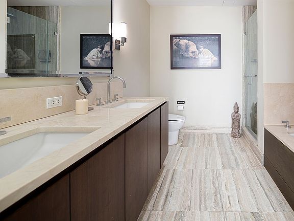 This luxurious, 2-bedroom 2.5 bathroom is located in the heart of Gramercy surrounded by Union Square and the Flatiron district. This open concept apartment is a breath of fresh air in a pre-war, full-service condominium. There are soaring ceilings, double-paned windows, central air and heat, an in-unit washer and dryer and walnut stained oak floors. The kitchen is fully equipped with a Sub-Zero refrigerator, Viking stove, Bosch dishwasher, stainless steel countertops and a wine cooler. The primary bedroom is well appointed with 2 huge closets and a spa-like primary bathroom with a rain shower and deep soaking tub. The building features a rooftop terrace with stunning views of the historic buildings in the neighborhood. There is also a beautiful lobby lounge and gallery, 24-hour doorman and concierge, a live-in superintendent, fitness center and bike storage. In walking distance to Union Square Greenmarket and Madison Square Park, restaurants, shopping, supermarkets, and a movie theatre. It is conveniently located close to public transportation lines including: 4, 5, 6, N, R, W, Q and L trains.