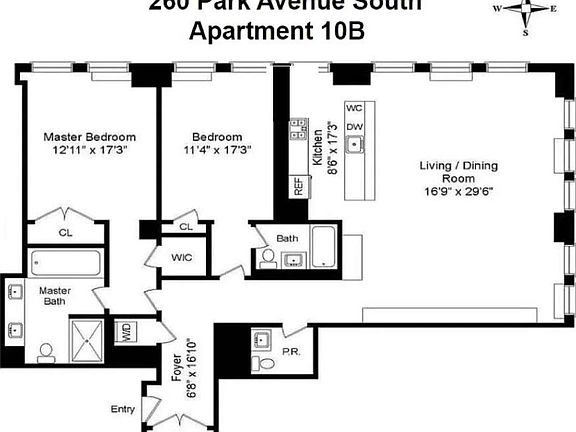 Introducing residence 10B, the most sought-after 2-bed, 2.5-bath corner unit on a high floor at 260 Park Avenue South. *The whole apartment has been painted white* Step into this sun-drenched home with city views overlooking Park Avenue in the spacious living room. The breathtaking great room spans nearly 900 square feet, is close to 30 feet wide, with 11-foot ceilings and nine expansive windows. The chef's kitchen is open to the great room and includes a Carrara marble island, Italian walnut cabinetry, and is equipped with top-tier appliances including a Subzero refrigerator, Viking range, Bosch dishwasher, and wine refrigerator. The expansive primary bedroom boasts tailored walk-in closets, with an ensuite marble and limestone bathroom featuring a double vanity, soaking tub, and separate shower. The spacious second bedroom offers custom built-ins and its own ensuite bathroom. The home is complemented by a powder room, in-unit laundry, and abundant closet space. 260 Park Avenue South offers the perfect blend of pre-war grandeur and modern luxury. The building has a full-time doorman, concierge, two landscaped roof decks, a fitness center, bike room, and a parking garage across the street. Convenient to all major transportation, the farmers' market, and some of the best restaurants in New York City, this truly is a rare find. Please call us for a private showing today!