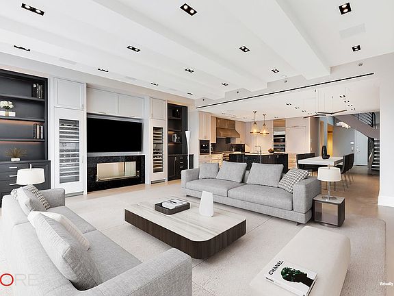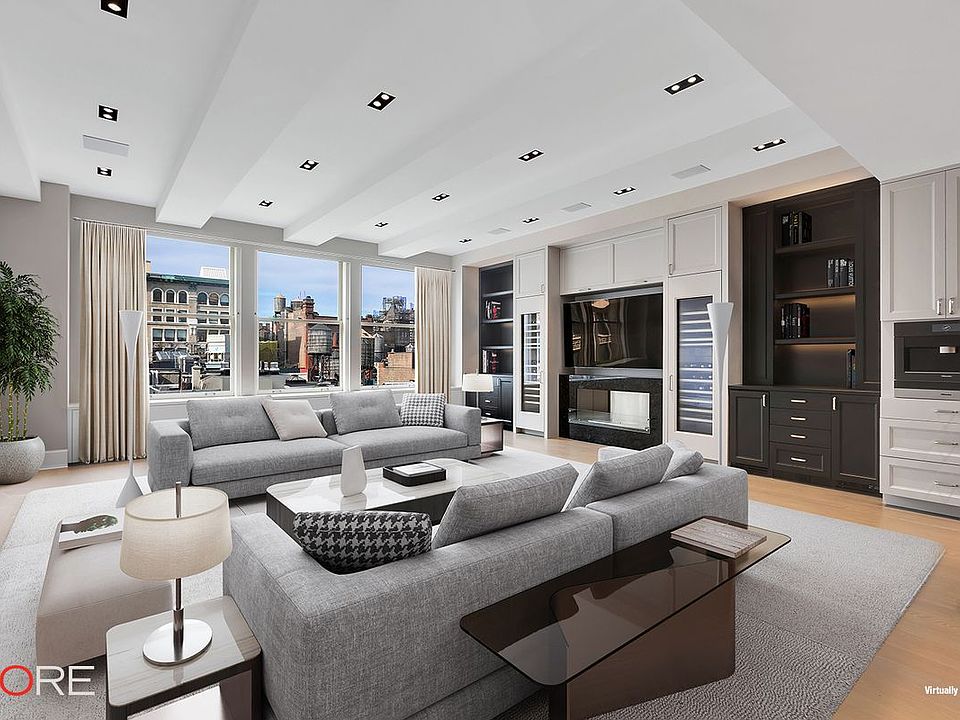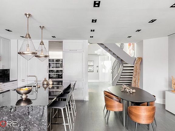 One of New York City's most extraordinary condominium penthouses located in the exciting Flatiron District, this grand loft-like space encompasses approximately 4000 sq. ft., with soaring 12 foot ceilings offering huge cubic volume, three walls of tall oversized windows, three exposures, and 3000 sq. ft. of landscaped wrap terrace imbued with quintessential New York City skyline views, catching a view of the Chrysler Building, the tops of two beautiful golden domes, and the last hand-painted billboard in New York City. Accessed from a private elevator landing, this pristine 9 room, 3 bedroom, 3.5 bath Penthouse offers an exceptional 50 foot long center gallery leading to a grand 55 foot x 27 foot great room with a view of the Chrysler Building. This exceptional corner great room has dark walnut stained oak floor, 12 foot ceiling, superb light through three walls of tall wrap around windows, and four doors leading to the landscaped terrace facing north, east and south, which wraps the entire Penthouse in greenery, and all of which offers an exquisite space for comfortable family living as well as lavish entertaining. The great room includes a stunning state-of-the-art eat-in loft-like open kitchen with 12 foot ceiling and features Calcutta marble countertops and island, slate backsplash, custom walnut cabinetry, top-of-the-line appliances including a Viking stove, Sub Zero refrigerator, Bosch dishwasher, wine refrigerator and ample counter space and storage. The kitchen has access to the terrace and the outdoor barbeque and dining area under a grand architectural portico of extraordinary scale and proportion. The expansive master bedroom suite has a 12 foot ceiling, a door leading to the wrap landscaped terrace and a huge window overlooking the terrace, a spa-like en-suite bath of silver travertine and limestone, premium fixtures, double sink vanity, Kohler oversized soaking tub, separate glass enclosed shower with large rain head shower, and a huge walk-in closet with storage to the ceiling. The second bedroom also has access to the wrap landscaped terrace, 12 foot ceiling, two tall windows overlooking the terrace and an en-suite bath. The third bedroom has a 12 foot ceiling, three tall windows overlooking the terrace, and an en-suite bath. A sunny library, private study, or nursery is off the entrance hall and looks south. Also off the entrance hall is a chic powder room for guests. There is tremendous fitted closet and storage space throughout the Penthouse, and a laundry room with Miele washer and dryer. The Penthouse is a smart apartment with automated light system and shades, Sonos surround sound, and central air conditioning. 260 Park Avenue South is one of Flatiron's top luxury condominium buildings and is comprised of two neoclassical buildings, built in 1917 and 1930 respectively, and converted into 86 apartments on 12 floors in 2004 by Karl Fischer Architects with interiors by Shamir Shah Design. The elegant lobby is entered on 21st Street and residents enjoy a full-time concierge and doorman, resident property manager, a state of the art fitness center, two roof decks, and bike storage. The building is pet friendly and welcomes pied-a-terres. This chic, full-service condominium residence is perfectly located minutes from Gramercy Park, Union Square, and Madison Square Park, and steps from some of Manhattan's best Michelin starred restaurants including Cosme, Union Square Café, Gramercy Tavern, ABC Kitchen and Eataly, as well as the hottest night spots, world class shopping and entertainment. The neighborhood embodies the perfect mix of downtown energy with uptown sophistication, offering a unique and extraordinary lifestyle.