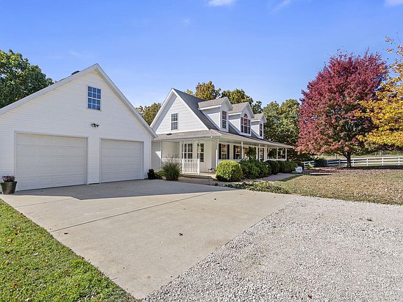Your dream property awaits, with immediate equity included, as it is priced under recent appraisal value. This one checks all the boxes. Farmhouse, 10 acres m/l, workshop, barn, pond, wildlife, large front porch, 5-stall machine shed, quiet setting, and a large kitchen with plenty of storage and countertop space. And it's within 20 minutes of Springfield!Outside, you will find a mix of wooded and cleared land with a white fence surrounding the welcoming home. You'll also find an arbor and a walk bridge leading across to the other side of the pond and ample privacy, as you have no visible neighbors. Take a seat on the porch behind the shop and you'll find the quintessential evening relaxation spot where you can watch the sun set behind the beautiful trees and hills. Step inside to the main floor and you'll notice the open floor plan with large windows, a rock fireplace, spacious living area, wood beams, dining room, sizable kitchen and an additional sitting room. The kitchen features an oversized island, granite countertops, a Viking professional gas cooktop and Jenn-Air double wall oven, proofing drawer, soft-close drawers, four trash can openings inside drawers. Also on the main floor, you will find the master bedroom, another bedroom (which could also be a great office), large laundry room with plenty of storage and cabinets and an additional bathroom. Head downstairs and find a second common area with a large rock fireplace, gym or storage room lined with cedar, and an open-plan bedroom with a closet and an exit onto a private back porch. Upstairs along the balcony area, you will find two bedrooms with two large closets in each, and one bathroom. Nest thermostat and driveway security alarm included. Machine shed (56'x30'), barn (24'x24'), workshop (12'x30') and lean-to (12'x24') are all in excellent conditi