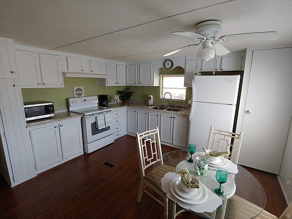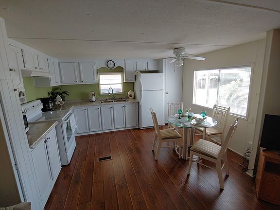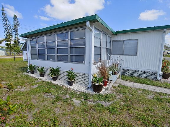 Located in Poinsettia Park, a 55+ Gated Community, this adorable Turn-key Home is all you need to start living the Florida Lifestyle. This 2 Bed/ 2 Bath home features multiple renovations including NEW plumbing, replaced with Pex Piping, NEW Electrical breaker box as well as re-wiring, NEW roofing of whole house, including porch, which is insulated with foam & metal panels and NEW A/C unit. The open kitchen comes complete with oven/range, fridge, and microwave. The spacious open floor plan features lots of windows, offering tons of natural light to welcome the day. Other features include NEW 2022 flooring in bedrooms, walk-in closets, En-suite bathroom, ceiling fans and smoke alarms. Water heater was also replaced new in 2021. Once outside, you'll love the multiple areas to enjoy the beautiful Florida weather including a Florida enclosed porch. Washer and dryer set are included and located in the shed, which offers plenty of extra storage space. With plenty of parking and a carport, this turnkey home has all the bells and whistles, so don't miss out and come see for yourself!