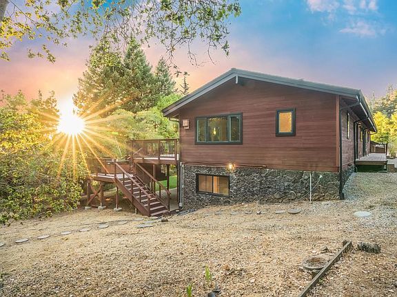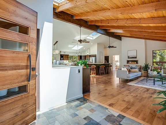 Savor every hour of sunlight at this gated home in Day Valley. Gorgeous hickory floors ground the vaulted ceilings, numerous skylights, & huge French doors that open to a massive deck. The indoor/outdoor Sonos speaker system will follow you & your cocktail from the deck back inside for a refresh. The kitchen is the centerpiece of the room, with a continent rather than an island, black walnut kitchen cabinets, & under-counter lighting. The skylights & vaulted ceilings continue into the master suite. A gorgeously refinished bathroom, huge walk-in closet, & direct access to the hot tub on the deck, rival any Sandals Resort. Downstairs, a remodeled kitchen with quartz counters, a full bathroom, bedroom, & huge living room offers a totally separate space for the kids. If you're looking for something more removed, your private 1.5 acres features an auxiliary building for your personal office, yoga studio, or art studio. Make the most of every day at this Day Valley stunner.