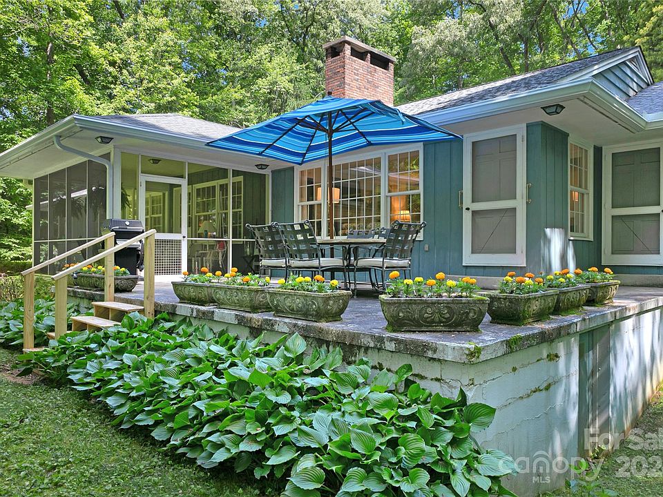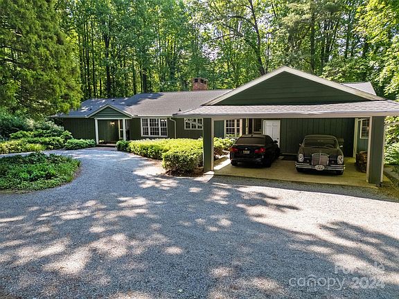 Enjoy the sanctuary of your own private forest just a few minutes to downtown Brevard. The only intruding sounds are the chirpings of birds or the wind through the mature forest and gardens. This Mid-Century Modern home was built by the current owners for entertaining friends and raising their family. Drive up to the circular driveway for easy access and enjoy a one level lifestyle with gracious living spaces throughout. Along with a primary suite, there are 3 additional bedrooms, a cozy den and library/office. The outdoor space includes a large screen porch and patio overlooking the mature perennial gardens and forest. In addition, an expansive basement, with an exterior door and windows, offers additional space waiting for your imagination. Located just outside the city limits and with no deed restrictions, this generous lot gives you the flexibility to create your own unique living space.