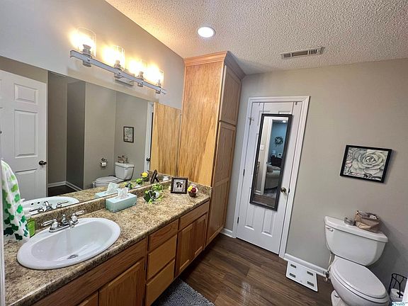 Immaculate home in Priceville Schools. Private setting. 3 bd 2 ba plus extra room could be 4th bedroom. Fresh paint, like new flooring, lots of recessed lighting, new dishwasher, eat in kitchen. Screen panels for front porch and huge covered back porch too.Tons of closet space. Side entry single garage. Private setting. Chain link fenced backyard. New dishwasher. Must see!