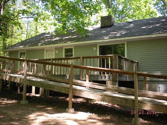 Stretch out on your own private land. Large 4 bedroom, 2 bath home with vinyl siding, front porch and rear deck. Huge living room with cathedral ceiling and wood stove in the fireplace. Handicap ramp on rear deck and outbuilding for storage.