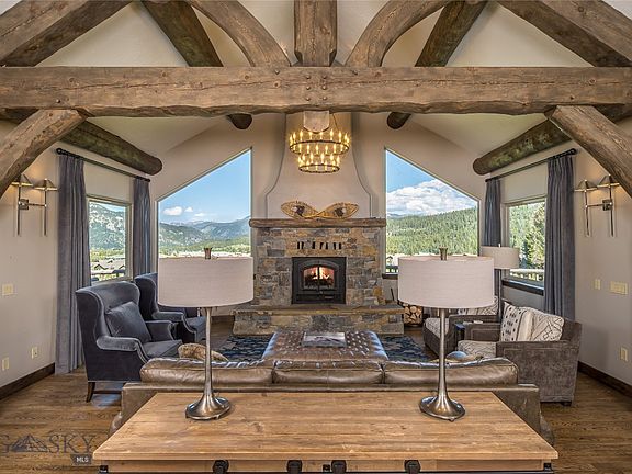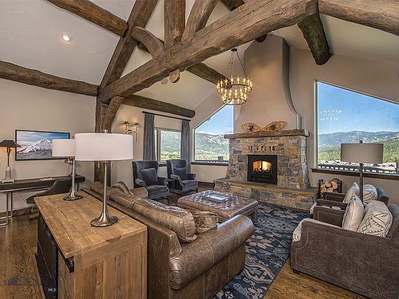Nestled atop the hill in the coveted Ousel Falls subdivision just minutes from the Big Sky Town Center, 260 Running Dog Road welcomes you with unparalleled vistas of Big Sky's breathtaking sunrises and sunsets. This meticulously designed, furnished single-family home is an entertainer's dream, blending comfort in every detail. Spanning approximately 4,972 square feet, this residence features a seamless open floor plan illuminated by natural light. The centerpiece is a gorgeous fireplace, anchoring the living space which flows effortlessly into a gourmet kitchen equipped with high-end appliances and a spacious dining area with a screened-in outdoor porch and an expansive deck. Boasting 5 bedrooms and 4.5 bathrooms, the home includes a large bonus room with full bathroom over the garage, a spacious primary suite complete with its own fireplace and radiant in-floor heating, this home epitomizes mountain living at its finest. Built in 2001 and recently remodeled, it showcases a sophisticated mountain design with premium finishes throughout, including central AC for summer comfort. Set on a generous 2.6-acre lot, outdoor enthusiasts will revel in the expansive grounds, offering ample space for recreation and relaxation. Imagine soaking in the hot tub while taking in views of the Town Center. Conveniently located near Big Sky's vibrant amenities and outdoor adventures, 260 Running Dog Road offers the perfect blend of privacy and accessibility. Whether you seek a serene retreat or a hub for entertaining guests, don't miss the opportunity to make this wonderfully comfortable Big Sky home your own—schedule your private showing today and experience the joy of mountain living.