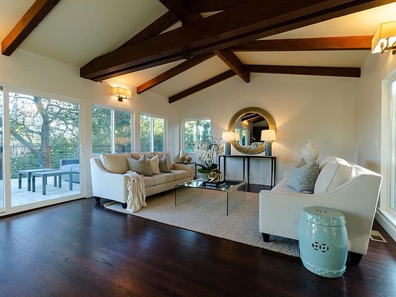 This lovely 3 bedroom + office, 2.5 bath home has hardwood oak floors, great sun exposure, an updated kitchen, vaulted wood-beamed ceilings, and gorgeous views of the Stanford hills. Wonderful entertaining spaces surround this tastefully landscaped property with sizable vegetable gardens, fruit trees, and many more opportunities to create your own oasis. Best of all, enjoy your Jacuzzi retreat just outside the main bedroom. The LRD is our community gathering spot for timeless traditions including Halloween, 4th of July parades, and many other activities throughout the year. Spend just a few minutes at the LRD and you will realize the one of a kind community you have joined. Enjoy leisurely outings to the Ladera Shopping Center, Alpine Trail, and the Stanford Dish. At the bottom of the hill, grab your morning coffee, enjoy lunch or dinner at various restaurants, or stop by Bianchini's for fresh fruits and vegetables from local farms. Top-rated Las Lomitas School District awaits.