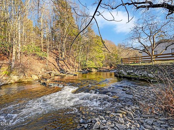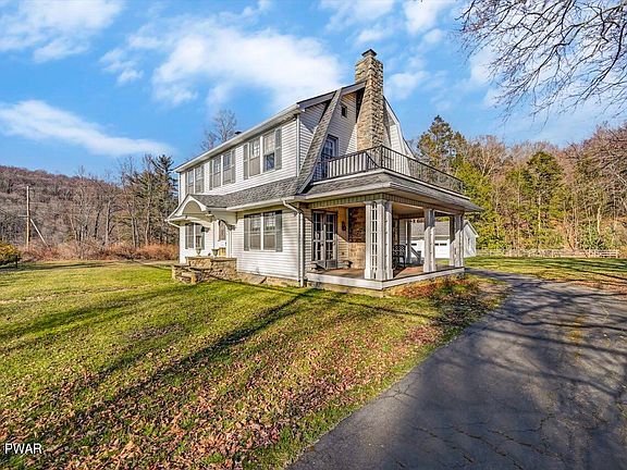 The Dunning House, a charming 4 bed 1.5 bath Dutch Colonial home built in 1929 with mountain views and a fresh trout stream for fishing or swimming! This home is full of classic enclaves featuring gorgeous natural molding and hardwood floors. The first level includes a living room with a grand stone fireplace, formal dining room, old-fashioned eat in kitchen, and half bathroom. The second level has a reading nook, 4 bedrooms, and a full bathroom. Two of the bedrooms lead onto a sizable outdoor terrace to enjoy the sun or relax with a book. The lower level houses the laundry area with washer and dryer. Head outdoors to enjoy the covered side porch off the living room and large yard space with a patio behind the 2-car detached garage. The large yard commands views of the mountains and sounds of the rushing creek by day and is a top star-gazing spot by night. Wander down the creekside to the ''listening point'' which allows you to fully immerse in the creek, to wade, float, fish, or cool off in the summer. This home is centrally located on S. Sterling Rd, providing direct access to neighboring towns & local activities. Whole house generator included. Currently a short-term rental with excellent reviews!