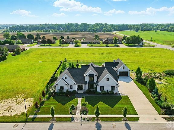 Welcome to this amazing and modern retreat—this gorgeous custom luxury home built in 2019 is truly one of a kind, with no expense spared and vacation-style living year-round. Located on 1 acre setting in highly desirable Minster. This 4-bedroom, 4.5-bath estate offers an ideal blend of elegance, comfort, and high-end functionality. Gorgeous landscaping surrounds the home and a walkway leads you into the home. Large entry opens into the open-concept main level features gorgeous hardwood floors, soaring ceilings, formal dining room and oversized windows flooding the space with natural light. The gourmet kitchen is a showstopper with a massive center island, custom cabinetry, Cambria quartz countertops, high-end appliances, double ovens, gas range, and a pantry. The hearth room, complete with a gas fireplace, flows effortlessly into the;large great room—perfect for hosting gatherings or relaxing at home.The amazing main-level primary suite overlooks the backyard oasis and includes a dream bathroom with a walk-in custom tiled shower and premium finishes, plus a huge walk-in closet.. Upstairs are generously sized bedrooms, each with walk-in closets and private bathroom, along with a finished bonus or bedroom. The full basement offers even more living space and includes egress windows. Step outside to enjoy the resort-style backyard, featuring a heated fiberglass saltwater pool with slide, water jets, LED lights, and an automatic cover. The pool house includes a full bath, laundry, and bar with a built-in dishwasher. A built-in hot tub, inground trampoline, covered patio with fireplace, two expansive decks, and professional landscaping with landscape lighting complete this private oasis. Additional highlights include zoned HVAC, Sonos surround sound (multiple zones), irrigation system, black aluminum fencing, and an oversized 3-car garage with an additional heated/cooled detached garage. See attached additional information. This is more than a home—it’s a lifestyle!