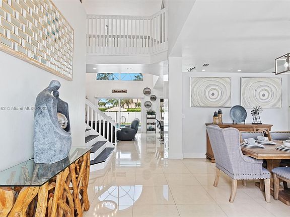Spectacular 2 story home in Exclusive, Gated Pembroke Shores community. It features 5 bedrooms, 3 updated bathrooms, updated kitchen and beautiful ceramic tiles and wood floors. Up the elegant stairs boost 4 bedrooms, 2 Bathrooms and cosy, relaxing patio off Master Bedroom. There are built in closets and updated Master Bathroom with separate shower and tub. Downstairs shows off its ceramic floors throughout; a full Bedroom, a full cabana bathroom and Laundry Room. Then there are the formal living and dining rooms; the modern, white, updated kitchen that opens up to the family room with the view of the pool and the spacious backyard with the extended, covered patio for entertaining. The home is elegantly finished with stylish Chandeliers and spot lighting.