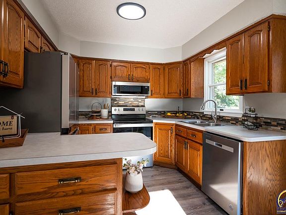 Home is airy and bright with new flooring and paint throughout. All spiffy and clean just waiting on you!! New kitchen appliances stay. You will love all the updated light fixtures. Home is conveniently located close to the school, swimming pool, park, and fairgrounds. Cozy backyard space with deck and fully fenced in yard with storage shed. This charming home is ready for new owner to add their personal touches and make it their own. Don't miss out, call today!
