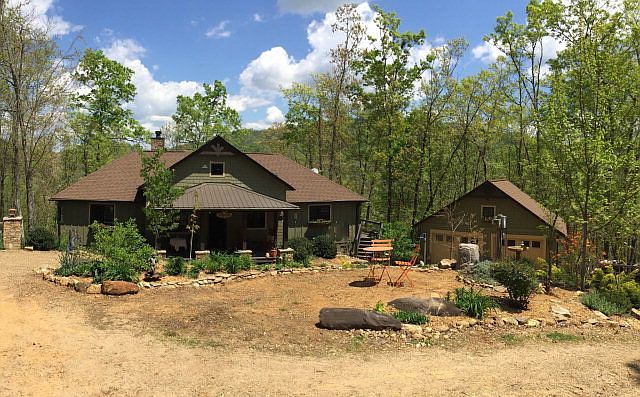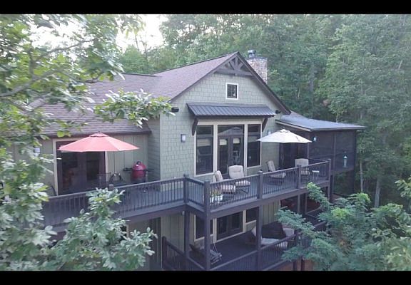 This custom mtn home built in 2010 has lots of great features that you'll love. It's an Energy Star Home built to strict energy efficiency guidelines for low utility costs. Upon arriving, you'll enter from a large covered porch into the home that has 10'+ ceilings w/beautiful solid wood beams. Living rm has a stone wood-burning fireplace flanked by built-in shelving & the adjoining dining rm accommodates a large table for entertaining. A wall of windows & glass doors (w/retractable screening) open to a large back deck from the living rm. The kitchen overlooks all this & has lots of special touches to please the cook: beautiful soapstone tops, glass tile blacksplash, large island w/seating, cherry cabinets, gas cooktop/electric oven & a large pantry. The master bedrm suite on the main level also has glass doors leading to screened back deck & the large master bath has a garden tub, subway tile shower, tile inset floors & huge closet. A split bedrm plan has the 2nd bedrm also on the main. Downstairs, family rm has custom wetbar w/sink & fridge & more built-in cabinets, a 3rd bdrm & bath + 2 bonus rooms & outside terrace. So much more with this great home! Tour & see for yourself!