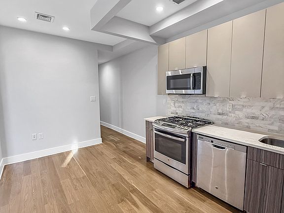 Upscale renovated four large bedroom two full bath with central AC and heat. Can also be used as three bedroom if you want more common space. Hardwood floors and recessed lighting throughout. Kitchen is modern with plenty of condo quality cabinetry, stone counters, stainless steel appliances including a full size dishwasher, built in microwave, full sized fridge and full sized four burner stove. Two gorgeous full bathrooms with modern vanity, one with stand up shower and one with a deep soaking tub. Located on the 3rd floor in a nicely maintained walkup building with laundry, just two blocks to the express Utica subway with the 2, 3, 4, 5 trains and 11 blocks from the A, C Utica station. Crown Heights, particularly the historic Weeksville section of Brooklyn, offers a vibrant blend of cultural heritage and modern living. Known for its rich history, diverse community, and beautiful brownstone architecture, the neighborhood is a hub of artistic expression, with numerous galleries, cafes, and cultural events. Residents enjoy easy access to parks, including Prospect Park and the Brooklyn Botanic Garden, making it an appealing destination for those seeking a lively urban environment with a strong sense of community and history. Tenant responsible for heat, hot water, cooking gas and electricity. Available now No Broker Fee Guarantors accepted including out of state and corporate.