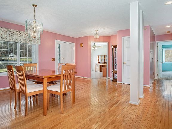 Super spacious Contemporary-style home built in 1994. Grand foyer entrance opens to formal dining area and vaulted living room with mantel and gas fireplace. Wall of windows overlooks private back yard and expansive deck. Perfect floor plan for entertaining. Large kitchen with oak cabinetry, tile floor, appliances included. Large eating area with slider to deck. First floor laundry room & pantry. The house is wheelchair accessible with two ramps. First floor Primary Bedroom has slider to back deck. Primary bedroom bath has wheelchair accessible shower and vanity plus huge closet. Den or office could be a fourth bedroom. Second floor has two bedrooms and a full bathroom. Full basement presents tons of opportunities for storage, workshop area or finished living space. The house is nestled in the woods at the end of a private driveway. Quiet and tucked away in the cul-de-sac. Delayed negotiations until Monday, April 7, 2025 at 11am.