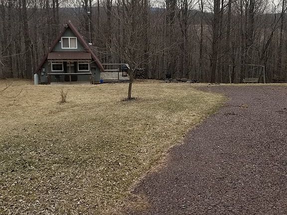 A-Frame cabin on 6.8 acres. Open Living room and kitchen with pine interior and wall to wall carpet. Back room has woodstove and access to small deck overlooking the wooded parcel. Bedroom is located in the loft area. Bathroom has stall shower and composting toilet. Drilled well hooked up to cabin. Property is perced.