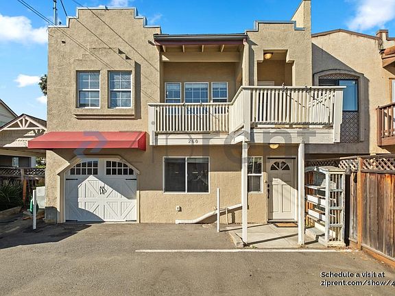 This property is available. Please inquire on this site to schedule a showing. Welcome to 260 Spring St, Pleasanton, CA 94566, where modern elegance meets downtown charm. This beautifully updated property boasts a spacious open-concept layout with abundant natural light and sleek finishes. The main living area features stylish tile flooring, recessed lighting, and a ceiling fan to keep you comfortable year-round. The gourmet kitchen is a chef's dream, complete with granite countertops, custom cabinetry, and top-of-the-line stainless steel appliances. A large pantry offers additional storage, ensuring you have ample space for all your culinary needs. Upstairs, the primary suite provides a serene retreat with its own private balcony, perfect for enjoying your morning coffee or unwinding in the evening. The en-suite bathroom is luxuriously appointed with dual sinks, a walk-in shower, and elegant fixtures. Additional bedrooms are generously sized, offering flexibility for a home office or guest accommodations. Conveniently located near Pleasanton's vibrant downtown, this property places you within walking distance of shops, dining, and local events, making it an ideal place to call home. Available: NOW Heating: ForcedAir Cooling: Central Appliances: Dishwasher, Washer, Dryer, Freezer, Garbage Disposal, Microwave, Range Oven, Refrigerator, Trash Compactor, Ceiling Fan, Double Pane Windows, Handrails, Large Closets, Patio, Balcony, Storage Space, Vaulted Ceiling, Window Coverings Laundry: In Unit Parking: Attached Garage, Carport, 2 spaces Pets: Case by Case Security deposit: $3,250.00 Included Utilities: Water, Landscaping Additional Deposit/Pet: $500.00 This property has a home security system. Disclaimer: Ziprent is acting as the agent for the owner. Information Deemed Reliable but not Guaranteed. All information should be independently verified by renter.
