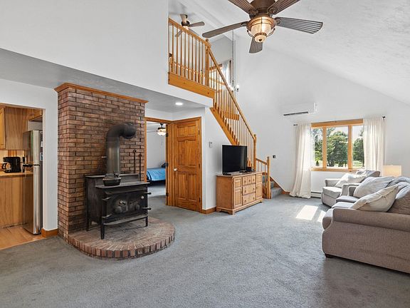 Welcome to this 2-bedroom 2-bathroom Cape home situated on a generous 5+ acre lot. This charming home boasts an inviting open-concept design, highlighted by a cathedral ceiling in the living and dining areas that create a bright and spacious ambiance. The kitchen features new appliances and offers direct access to a convenient 3/4 bath. Additionally, there is a bedroom on the main level, making single-level living a breeze. Walk up to the second floor and you'll find a versatile loft area that can be utilized as a den or a home office. Another bedroom with double closets and its own full bath is also located on this level. The partially finished lower level presents an excellent opportunity for a game room, workout area, hobby space, or additional bedroom allowing you to customize the space to suit your preferences. The spacious screened porch is perfect for summer evenings as well as a a wrap-around deck. Don’t forget the 4-car garage with extra covered storage for all your lawn equipment and an RV hookup with 30 amp service & water. Situated away from the road, this home provides a greater degree of privacy than the address might imply. The yard offers plenty of room for activities, and there is an abundance of wooded land to explore and appreciate. Situated minutes away from downtown Meredith as well as Moultonborough, you are at the center of it all for outdoor recreation activities and access to to everything the Lakes Region has to offer.