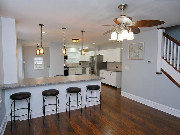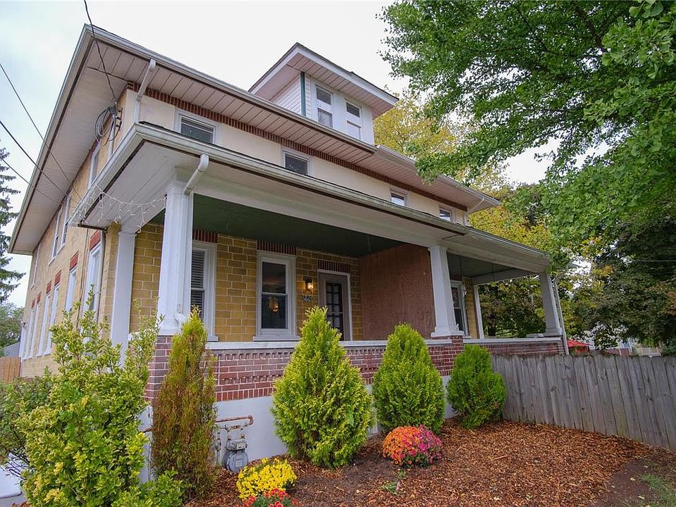 This updated twin home has been modernized without losing its original charm. The first floor has been completely opened up and features a large eat in kitchen with peninsula, quartz countertops, shaker cabinets and a fun and versatile butler's pantry. Lots of recessed and decorative lighting enhances the natural light from the surrounding windows and really emphasises the rich tones of the wood flooring. Stunning columns and built in cabinets define the livingroom area without cutting it off from the rest of the main floor. The second floor hosts 3 bedrooms connected by original hardwood floors and a modern full bathroom, while the 3rd floor has been covereted into a large studio style bedroom with upgraded windows and lots of storage. More living space available in the semi finished basement featuring a half bathroom and cozy wood or coal burning fireplace. Fenced back yard and huge back lot behind the garage. Walking path right behind the property. Comes with a 1 year HOME WARRANTY!