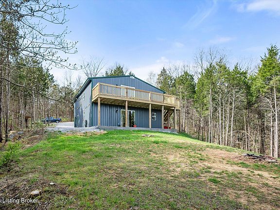 MUST see this beautiful 1 bedroom 2 bath 1100 sq. ft. barndominium nestled in the trees on a 1.54 acre heavily wooded lot. This home has tons of outside entertainment space with a large deck and covered porch. Inside you will find quality craftmanship throughout the home with large living room, kitchen with beautifully crafted live edge island and all appliances remaining including the washer & dryer. There is a 2 car attached garage. It's only 6 miles to I-71 exit 28! Call today for your private showing of this fine home.