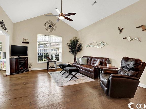 Low maintenance home-style villa. You won’t want to miss out on this immaculate luxury 3BR/2BA with Carolina room and 2 car garage at Long Bay Villas formerly known as Stonewall Villas. The moment you walk in you will see the open floor plan and cathedral ceilings. The owners have done lots of upgrades such as; stunning décor, upscale furniture, absolutely beautiful hardwood floors throughout beautifully decorated décor and kitchen granite with glass tile back splash, black stainless appliances, under cabinet lighting, both bathrooms have tile walk in showers and tile floors, screens have been installed on all the windows along with easy access hurricane shutters, laundry utility sink in the garage. This particular unit has two units together instead of four units. The Carolina room has lots of natural light, extra storage off the laundry room with an extra refrigerator and all ceiling fans are remote control. Just down the road is the beautiful clubhouse that features an outdoor pool, fitness center, full kitchen and game/billiards room. This is not in a flood zone. The HOA includes water/sewer, trash service, building insurance, wifi/cable, pests control, dryer vent cleaning, pressure washing, maintenance landscaping and pool/clubhouse. You have to see this amazing place and all if has to offer!!