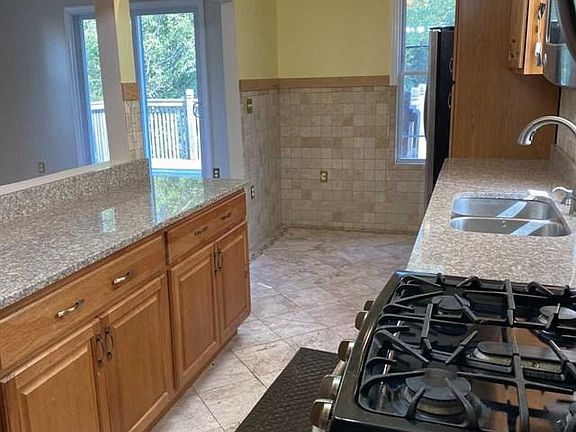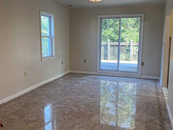Upon signing of lease, Tenant's fees include 1st month rent, 1.5 month security deposit & 1 month real estate fee. Spacious Townhouse Style 3 BedRm, 2 Bath, 3 level bright apartment with a private entrance in an owner occupied 2 family home. Enter into a ceramic tiled large foyer with guest closet then up to an open concept layout featuring a spacious Living Rm, Dining Area & updated tiled & granite Kitchen that includes stainless refrigerator, dishwasher, micro & gas oven. The ceramic tiled Living Room has sliding glass doors to a deck. A large Master BedRm with 2 closets & hardwood floors plus an updated full bath with washer/dryer complete the 2nd level. The 3rd floor has another beautifully tiled bath with jacuzzi tub and 2 addit'l large BR's with hardwood flooring. C/A, 2 parking spaces & yard use. Absolutely No Pets or Smoking permitted. Convenient location, just a short walk to bus, schools & shops! Hurry, this Great apartment with immediate occupancy will not last!