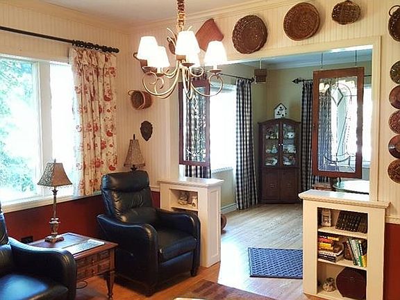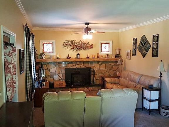 All brick cape cod on level acre+. Features crown molding, hardwood floors, stained glass windows, granite counter tops and beautiful master suite. Second bedroom upstairs has large walk-in cedar closet. Beautiful stone fireplace in living room. Built in bookshelves, first floor laundry. Finished lower level with bedroom, gameroom, workshop and wood stove. Master suite offers large updated bath with soaking tub and two separate walk-in closets. Expansive covered front porch, large rear deck, firepit in backyard. Portion of yard is fenced in. Detached garage has attic above and attached workshop/shed.