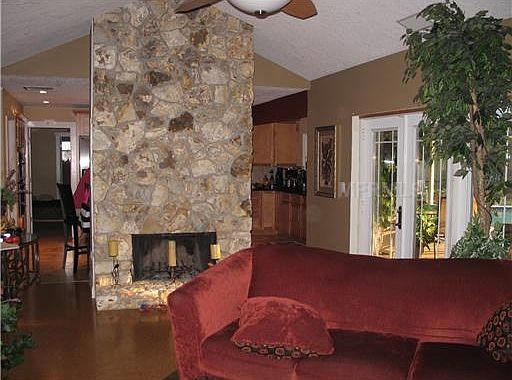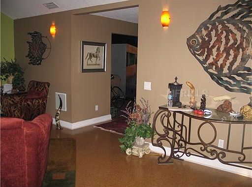 This gorgeous home is located in a fantastic gated community that offers access to a playground, tennis courts and Spring Lake. The family room is open to the kitchen and features a wood-burning fireplace encased in stone, french doors leading to the large lanai, and eco-friendly cork flooring. The living room has been converted into a media center, but could easily function as additional living space. The formal dining room gives you a great place to share a nice meal with close friends and family. The gourmet kitchen has recently been remodeled and features granite counters, top of the line appliances and travertine flooring. The back patio is covered and overlooks the screen-enclosed pool.