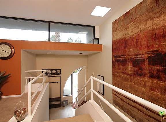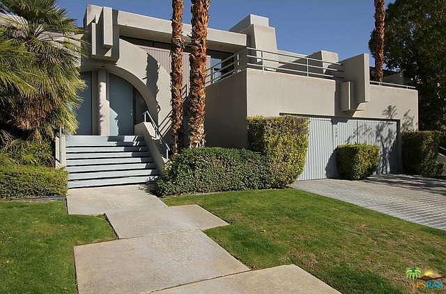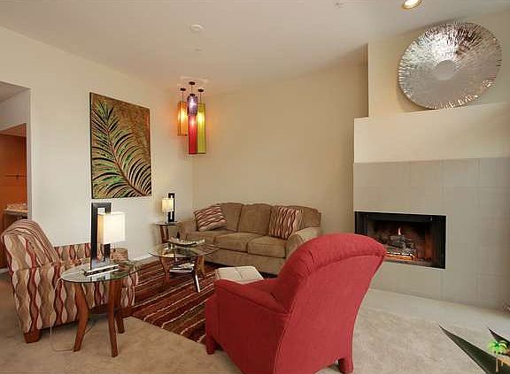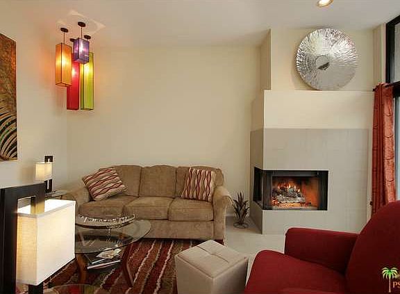 Welcome to the Compound, a 12 unit townhouse complex built in 1985 situated in the Palm Springs Uptown Design District off North Palm Canyon Drive offering many restaurants and boutique shopping to the new purchaser. This contemporary townhouse has 2 primary suites; an entry foyer leading upstairs to a large living room with fireplace, remodeled kitchen and a front deck offering views and shade from large ficus trees. The lower area is entry to the bedrooms; laundry in the hall and entry to a private patio just steps to the common pool and spa. Private one car garage.