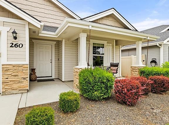 Darling single-level home offering 3 bedrooms, 2 full baths, and a clean, modern feel throughout. Vaulted ceilings and an open layout create a light and airy atmosphere. The kitchen features granite countertops, a full tile backsplash, a center island, and stainless steel appliances. The spacious primary suite includes an oversized walk-in closet, dual vanities, a soaking tub, and a private water closet. Step outside to a beautifully landscaped, low-maintenance backyard with a cement patioperfect for relaxing or entertaining. Blinds throughout are included, and the backyard is fully fenced. Conveniently located between all the shops & restaurants in both Eagle & the Village in Meridian. Enjoy nearby Settler's Park with pickleball courts, playgrounds, a fishing pond, ball fields, and a splash pad.