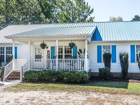 WATERFRONT KERR LAKE HOME with private dock and permit. This home boasts a new metal roof, new 20 SEER Heat Pump system for energy efficiency, new granite countertops in both the kitchen and bathrooms and a 24' x 40' INSULATED SHOP with electricity and mini split, covered patio and huge awning with concrete slab for boat storage! Plenty of space for your vehicles or water toys when you aren't enjoying the lake. Savor your oversized front porch and screened in back porch. Take a stroll down the shaded path (a short distance) to your private dock. Water depth is 7-8' at end of dock. Family room has free-standing LP gas logs. Open floor plan to dining room, living room and kitchen with lots of cabinets, range, microwave and refrigerator. All one level. Master bedroom has a walk in closet and double sink vanity. Pull down attic and full house dehumidifier in crawl space! Beautifully landscaped. Detached metal carport. Septic for 3 bedrooms, city water. Stick built. Across from Satterwhite. Dock permit #5118 This one won't last!
