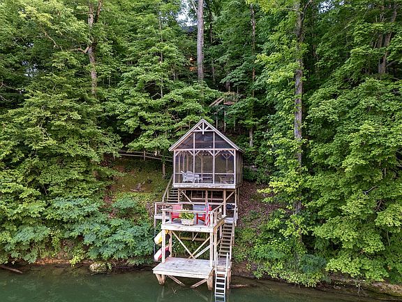 Discover the perfect blend of tranquility and convenience from this enchanting riverfront Rock Island Tennessee property. Offered with this unique estate is a waterfront screened entertaining pavilion with swim platforms, separate two-car garage with overhead flex space, charming potting shed, AND an additional 0.4 acre waterfront lot which provides ample space for gardening or adding another home to this outdoor oasis. The meticulously maintained main house features open-concept living areas which blend seamlessly with expansive upper and lower porches featuring fireplace and outdoor shower, providing beautiful spaces to enjoy the surrounding nature. Lush landscaping includes a variety of plants and trees, creating a private, park-like experience. Situated in the heart of Rock Island, you are a just a short drive away from local shops, quant restaurants, and recreational activities. Located less than two miles from popular Cotton's Marina. Private docks allowed.