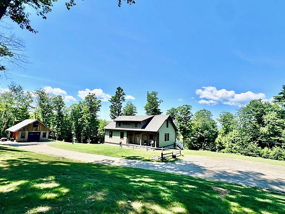 You'll want to see this beautiful custom-built home in person to appreciate the craftsmanship, amenities, and expansive views. Enjoy the westerly facing views as you enter along the split rail fenced driveway to the country style entryway. Built in 2016 there are numerous modern conveniences, coupled with traditional finishes. Inside, you'll enjoy open space, lots of natural light and vaulted ceilings. A chef's style kitchen offers true attention to detail with 'coffered' ceilings, large granite counter-tops, high-end appliances, a bar style island, custom hardwood cabinets and rustic hardwood flooring. 1st floor living is a fantastic feature with the master bedroom and bathroom on the ground level. The first floor also offers an office/study, family room, living room, dining room, full bath, and separate laundry hook-up's. A winding stairway leads to 2 upstairs guest bedrooms, an amazing open play area and full bathroom. Don't forget about the finished basement area which includes full entertainment/media/game/party room, 3/4-bathroom, large laundry room, tons of extra storage area, and walk-out to ground level. Outside you're going to love the views, privacy, and the beauty of nature. So much to mention: expansive deck, outdoor shower, garden, chicken shed, landscaping, or the post & beam garage are just a few of luxuries of county living. Highly desired location; near Spofford Lake, shopping/restaurants, skiing, hiking, biking and snowmobile trails. This could be yours!
