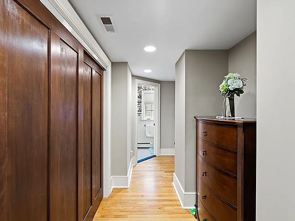 This beautifully reinvented circa-1800 farmhouse blends old-world charm with a stunning modern addition. Enjoy an open-plan kitchen and spacious family room, a formal dining room with a walk-in fireplace, and a light-filled glass hall to the patio. The main suite features a serene ensuite bath and dressing area with multiple closets, plus two more bedrooms and flexible extra rooms. Two basements (one with a wine cellar), central 2-zone AC/heat, and generous storage make this home as comfortable as it is unique.