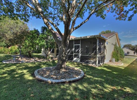 A rich Zoysia lawn invites you to see more of this wonderful Sun City Texas Cypress, where at every turn surprises will impress. A custom "hidden" storage banquette creates a fun place to sit in the bay-windowed breakfast room, while updated Corian counters and additional cabinets make this kitchen a winner. French doors lead from the great room to the tiled hobby room/den, formally the covered patio. There, more custom built-ins make this the extra room that you've always wanted. Privacy Galore.