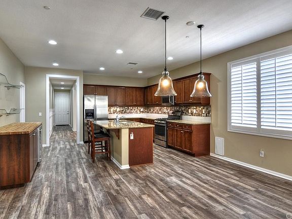 Resort style living at the premier 55+ active adult community of Four Seasons in Beaumont. This amazingly upgraded Collage model offers 1600 ft of living space, and features upgrades like gorgeous high end laminate flooring throughout the entire home, Granite counter tops with tile back splash, Stainless Steel appliances including the refrigerator, Brandy colored cabinets with pull outs, upgraded lights and fans, Trimmed/encased room and hall openings, Plantation Shutters throughout, Built in buffet with wine cooler, Pelican water filtration system, Bay window in Master bedroom, Epoxy coating on garage floor and "Extra" tandem space in garage adding an extra 15 ft, perfect for work shop, motorcycle, golf cart. Both the front and backyards are done in "Maintenance Free" landscaping, and the backyard includes an Alumawood patio cover with ceiling fan. From the back patio you have views of the local mountains. This home is $30,000 less than buying new and you don't have to do anything, it's move in ready. The Four Seasons Community Includes a guard gated entrance, a Lodge with a Resort Class Pool Complex, Ballroom, Bistro, Theatre Room, Billiards, Salon, Tennis Courts, Fitness Center, Walking Trails, and a New Indoor Pool Complex. Come see for yourself.