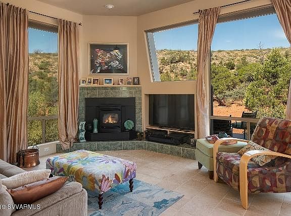 Split level, 6 steps up, 6 steps down. Backs up to USFS with no views of neighbors. Truly a one of a kind, magically home.