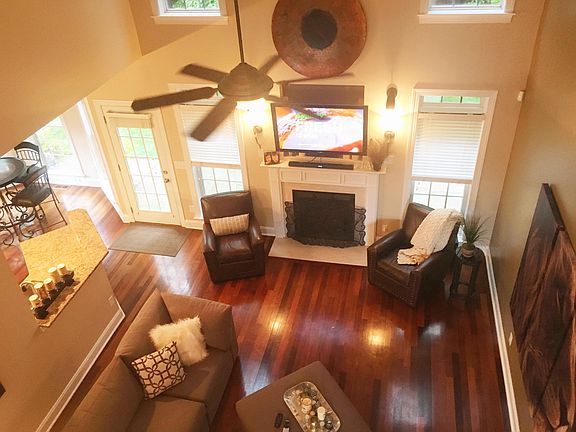 Bring Your Buyers! Upon entering this home it's obvious it has been meticulously cared for by the Sellers - beginning with the refinished and lustrous Brazilian Walnut Hardwood Floors! The Master Suite is on the Main and the Master Bath has a vaulted ceiling and separate, granite vanities! Kitchen and Breakfast Rooms offer a great gathering area - Kitchen has granite counters along with SS Dishwasher, Range Hood and Cook Top replaced early 2018! SS Refrigerator 2017. Entertaining made easy as Kitchen opens to outside patio and 2-story Great Room w/cathedral ceiling & gas fireplace! Dining Room is spacious and Den can be used as a work-from-home office. Staircase has lovely wood stairs and wrought iron spindles leading to "Catwalk" Balcony and remaining 3 Bedrooms! 2 additional Full Baths - 1 is a unique "Jack & Jill" as they have separate vanity areas. Fenced Yard, along with mature trees, offers backyard privacy. Irrigation system. Home Warranty!