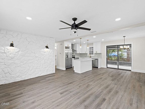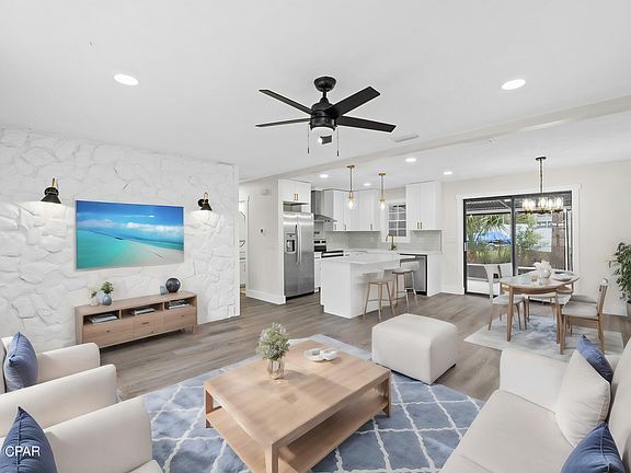 You'll notice the attention to detail in the completely remodeled kitchen with a pot filler, spacious kitchen island, apron front sink, all new appliances & all new cabinetry! Notice as you walk through -the attention to detail continues in each room with new light fixtures, ceiling fans, recessed lighting, new 2-panel doors, new paint, new baseboards! There are TWO spacious living areas - one may be used as a man cave, den or office if you need! Both bathrooms have been COMPLETELY renovated to carry on the elegance of the home! A brand new HVAC will keep your new home comfortable year-round! The large, 3-parking bay shed structure in the expansive back yard offers space for storage, hobbies or whatever you can imagine! Renovate it for an extra living space or rental income! The LARGE corner lot is big enough to be subdivided for creating an additional home for sale or rental income! New exterior paint adds a beachy feel to the home & crisp curb appeal!