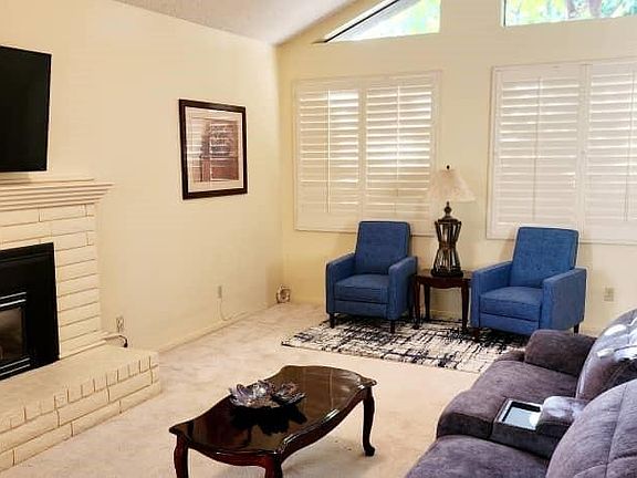 Fully furnished! Wonderful, peaceful and beautiful home tucked away in the heart of the southwest! Spacious 2 bedroom 2 bath home with an office (can easily be 3rd bedroom) located in a charming gated community. Common area includes a sparkling pool, heated spa, and lush garden landscaping with private paths to stroll through. Perfect for entertaining, this spacious 1852 sqft home features a large living room, covered patio, vaulted ceilings, wet bar, and a toasty fireplace. Upstairs retreat has its own private lounge and outdoor patio, while downstairs private bedroom has an enclosed secret garden. Extra office/game room includes its own private entry & patio and is furnished with a sofa chair if needed as 3rd bedroom. Enjoy all the perks the Laurelglen community has to offer! Trained and well-behaved pets only. Owner pays for landscaping. Pet rent is $25/month per pet. 12-month lease.