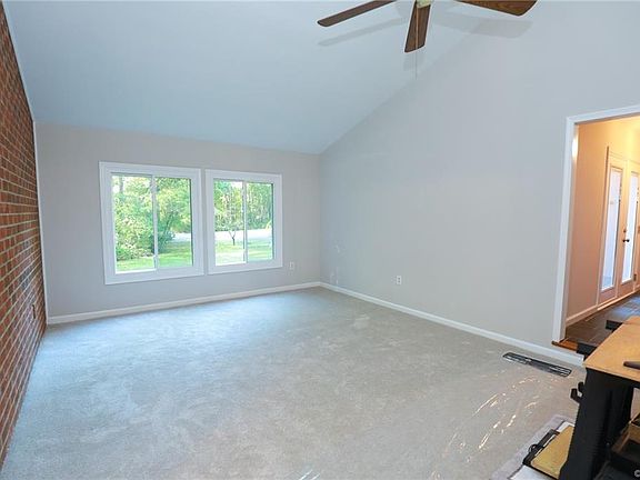 NEW PRICE! Rare opportunity to find a stunning 3 bedroom 3 bath upgraded home on large 1.27 acre Cul-de-sac lot. This beautiful home with open floor plan features a large eat in kitchen with brick fireplace, family room with vaulted ceiling, office with vaulted ceiling, foyer with slate floor, large screened porch, and 1 1/2 car garage with workshop. The 2nd floor has three large bedrooms, the primary bedroom has an upgraded bathroom with a huge 11x6 walk in closet. This home has updated bathrooms, new carpet throughout, has been freshly painted, new hot water heater, paved driveway, and has upgraded Champion Windows that have a lifetime warranty. Enjoy being in an established neighborhood that is closed to shopping and restaurants. This home is a must see!