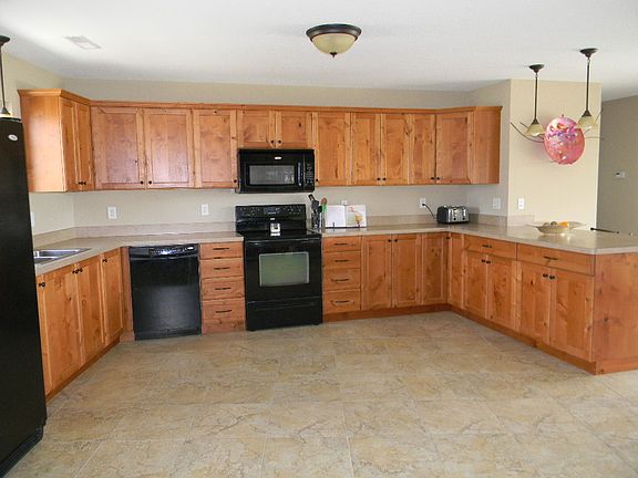 Lovely ranch on an acre lot has large open plan that features elegant living room Spacious kitchen is open, has beautiful tile flooring, rustic alder cabinets, black appliances, breakfast bar and access to covered back patio Dining area is open to kitchen. Master bedroom has private full bath and walk-in closet Three other bedrooms are spacious and are convenient to hall bath Located on quiet cul-de-sac Huge backyard w/ storage shed and next to walkway bridge to school