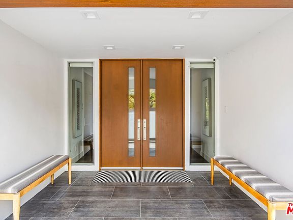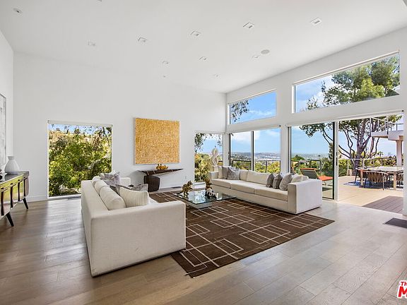A Contemporary Modern view estate nestled atop one of the best streets in a coveted celebrity enclave of the Outpost Estates. Enjoy sweeping views of the Hollywood Hills, Griffith Observatory and Downtown LA from almost every room in the house. Enter through a gated private entryway to a spacious loggia welcoming you to the wood-paneled the front door. Once entering the house, you're greeted by dramatic 15' ceilings and open concept living for the ultimate entertainment space for guests. Sliding doors lead you to a large patio and outdoor living, with al fresco dining overlooking the city and canyon views. A secluded Primary Suite sits on the top level of the home, separate from the living and entertainment spaces. Capture direct views of Downtown LA from your bed or private patio for morning coffee or evening sunsets. Beyond the extensive patio space is over 19,000 sq ft of usable land and yard, perfect for a garden or grassy space. Plans are available for a Pool, spa and living area extension, adding tremendous value to an already impeccable home