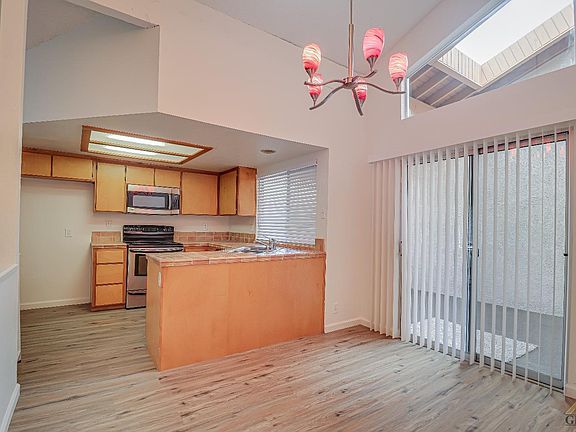 Perfect condo for that first time home buyer!!! Located upstairs this 2 bedroom 1 bathroom condo has new flooring and paint throughout. Open floor plan with stainless steel appliances in the kitchen, attached 2 car garage and a covered patio. The location is ideal with the new amazon center across the street and walking distance to shopping and restaurants. On the weekends you can lounge at the community pool or hop on the nearby freeway and head to the beach. Make your appointment now before its gone.